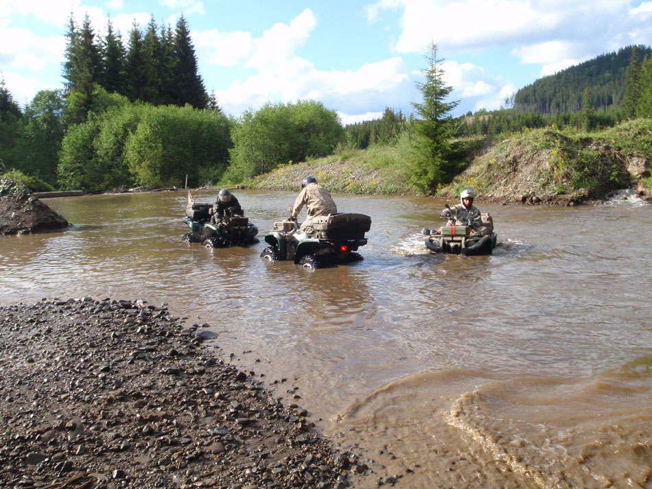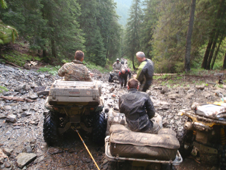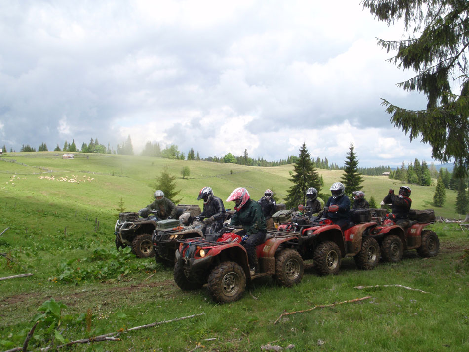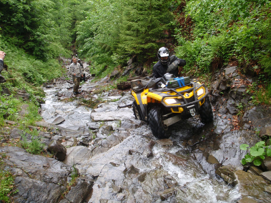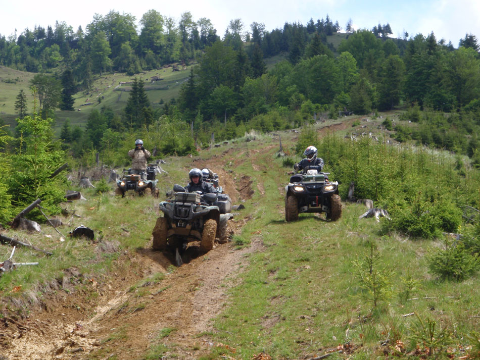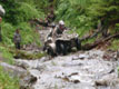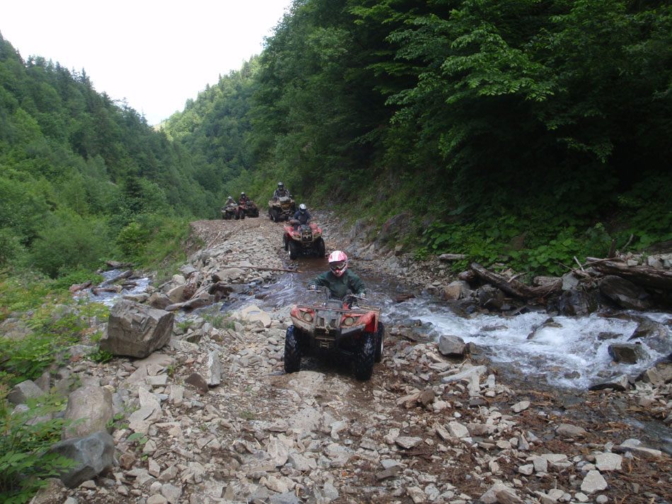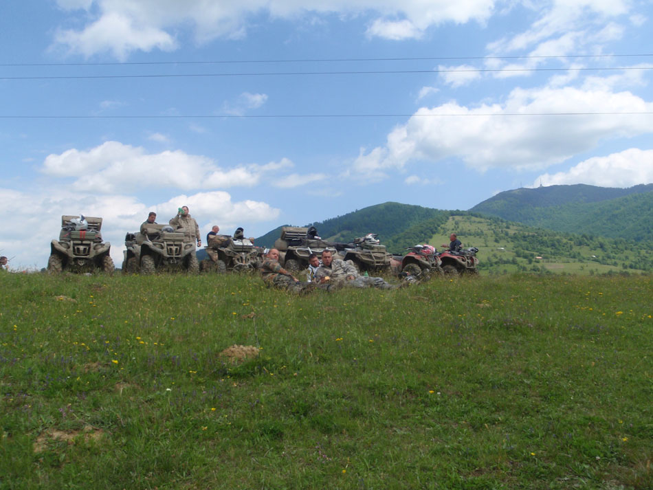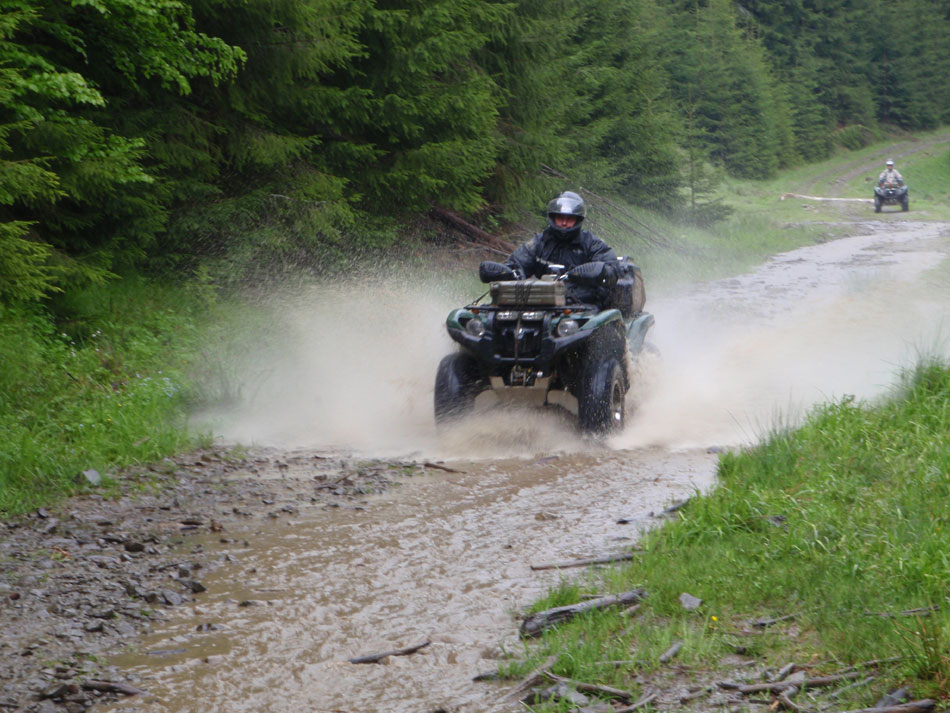 20.00 hod. - Počasí nám pořád nepřeje, dnes celý den pršelo, přesto jsme najeli 120 km. Při výjezdu potokem za Henu Mare dala jedna Grizzlina 6x pana-orel, ale jezdec i stroj OK, tak jsme se vrátili na hotel. Cestou