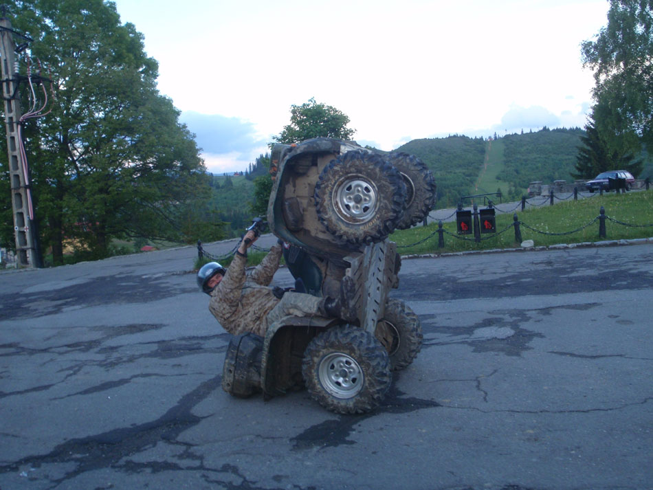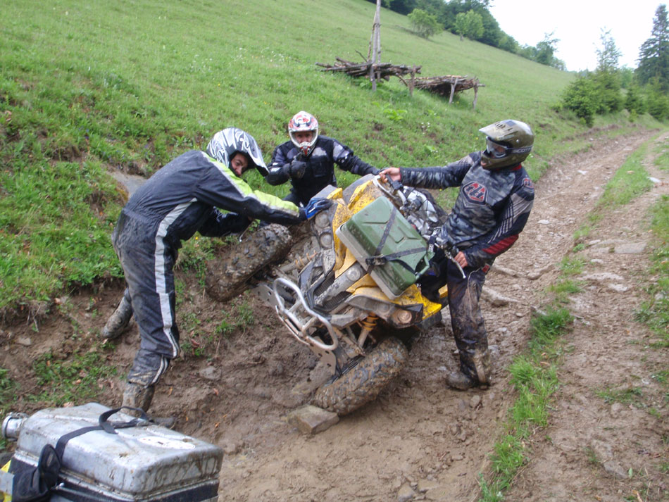 na zadní, ale udrželi jsme ho bez pádu. Když jsme povytahovali stroje, odtáhli jsme Xko do opuštěné salaše na hřebenu a vydali se na hotel, cestou průtrž mračen. Zdar Náča