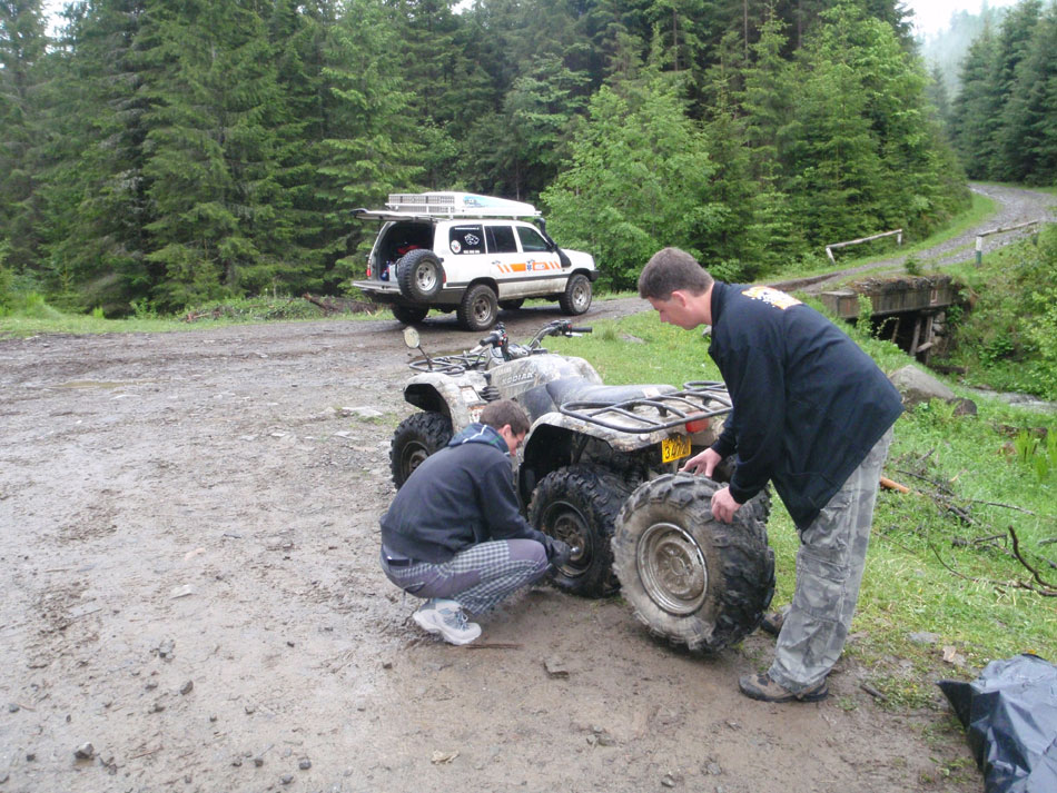 8.00 hod. - Včera jsme se vrátili z trasy ve 23 hod., byl to nářez. Ráno jsme čekali do 11 hodin až se zvedne mlha a bude sluníčko, když jsme připravovali 4kolky začalo pršet, tak jsme