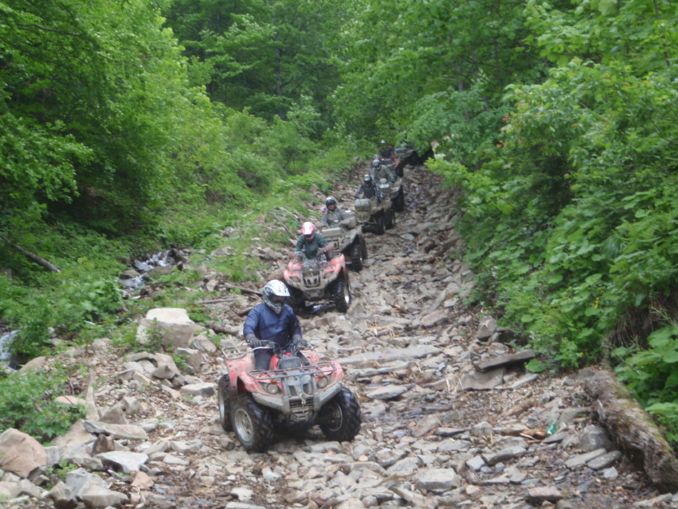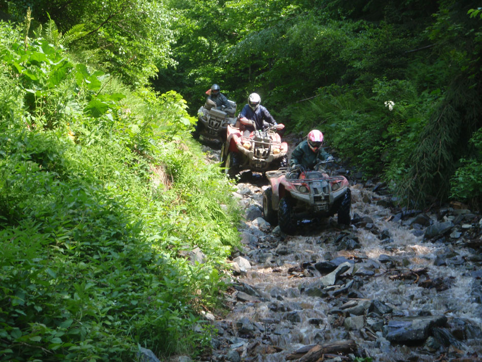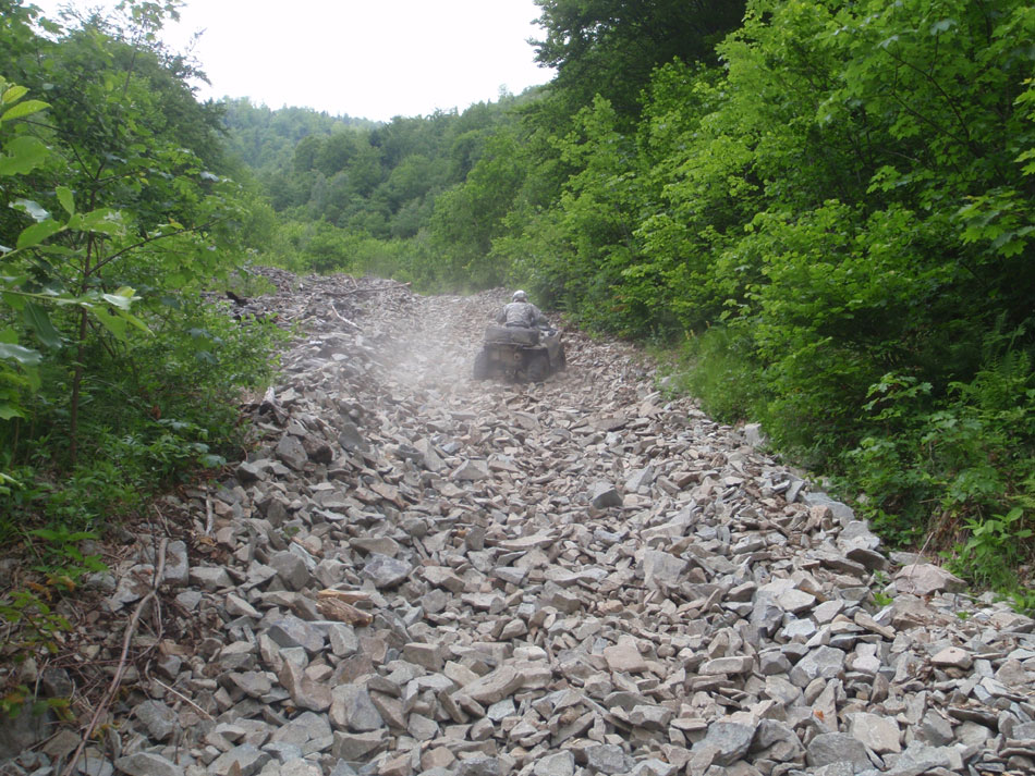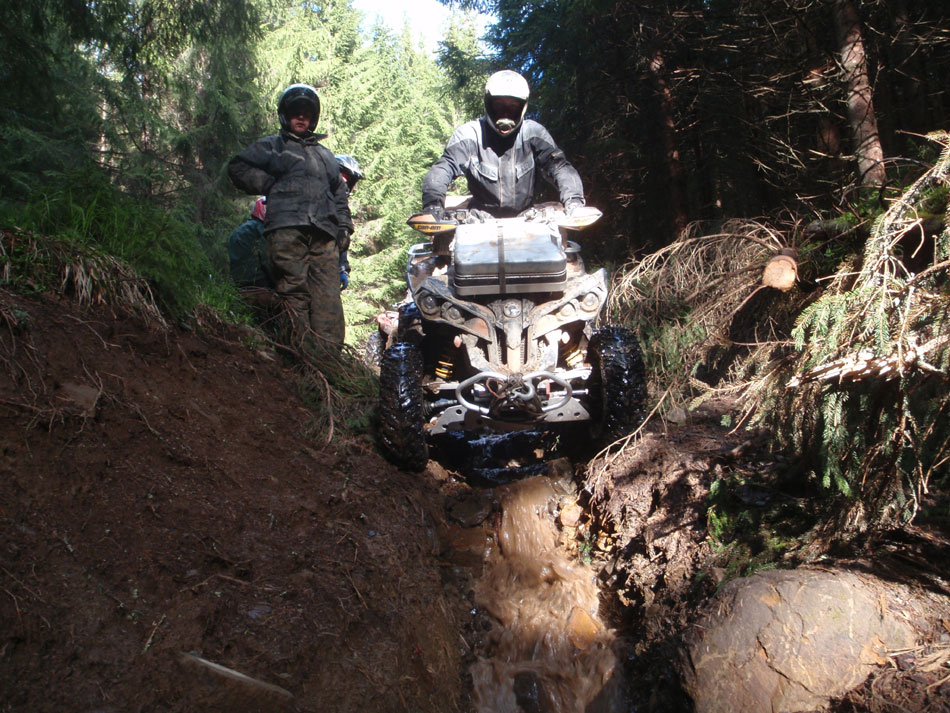 srazit pneu z ráfku, mezitím se opékaly buřty. Pak jsme vyrazili na hřeben. Kluci chtěli něco akčního, tak jsme sjeli do údolí a dali výjezd potokem, kterým jezdíme s offroady z "Mého kempu".