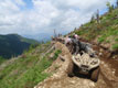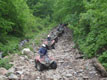 nakonec to všichni se vzájemnou pomocí zdolali. Pak Pavel s Renegadem udělal o kámen disk, tak jsme ho sjeli do vesnice vyklepat. Kolem 13 hod. začalo pršet a my se vydali horskou