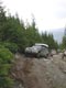 kameny - první se vyvrací, druhý pokus je úspěšný, Patrol je zpátky na čtyřech - motor v pohodě.