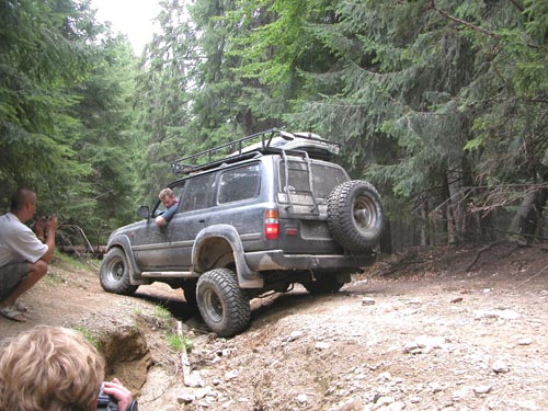 sváru zadní tlumič a než jsme dojeli na asfalt, odnesl to i druhý. U LC80 se pro změnu