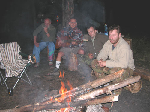 21 hod. - Sedíme u ohně na břehu jezírka v 1000 m n.v. Dnešní den jsme strávili v "ELDORADU"