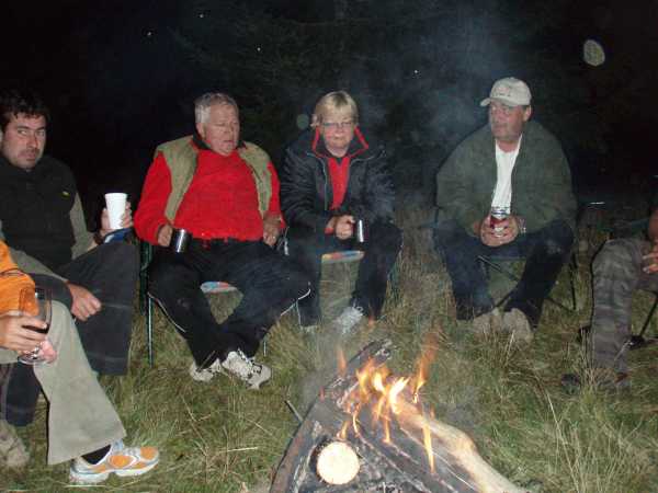 20.00 hod. - Sedíme u ohně a probíráme zážitky z dnešního dne. Od rána azuro, výjezd na hřebeny do 1657 m, pak po hřebenech asi 15 km.