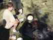 20.00 hod. - Tak sedíme u táboráku a probíráme zážitky dnešního dne. Přesun po hřebenech s výjezdy po cestách rozervaných erozí,