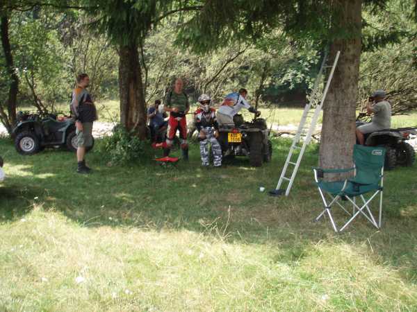 masovou pánev venku na grilu a spali v altánu na stolech. Ráno azuro a koupel pod jezem v tůni. V 11 hodin vyrazíme na čtyřkolky. Zdar Náča