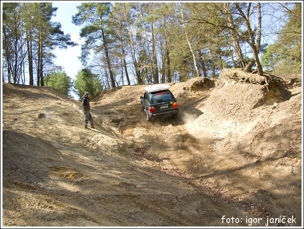 Odpoledne nás ještě čekala přírodní pískovna ukrytá v borovicovém lese a nakonec dlouhé okopy plné bláta, pozůstatek po "Ivanech" a jejich tancích.