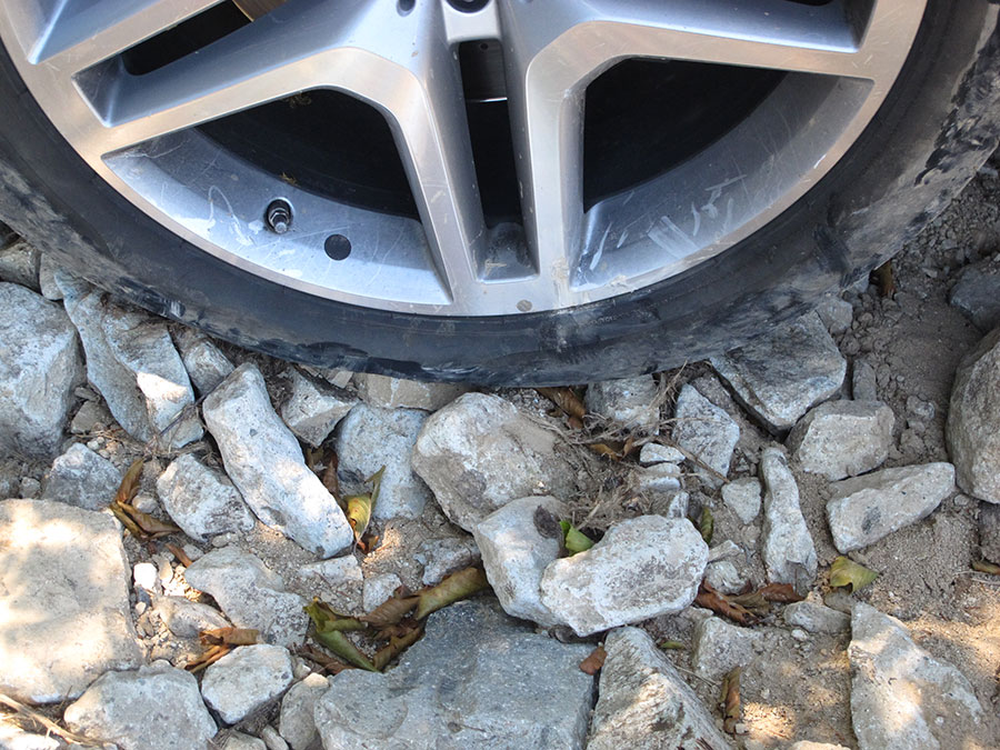 Jediný problém byly pneumatiky, neboť se objevil i rozměr 295/49R21, všechny v sériovém provedení s dezénem na silnici - skóre bylo 18 proražených pneu a 151 knotů, kterými jsme opravovali malé průrazy.