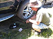 19:15 hod. - Dnešní dopoledne jsme strávili opravou pneu na Cherokee, udělal dvě pneu zboku a jednu nám zavařili. Po 10.hodině jsme vyrazili směr Rodná, přestalo i pršet.