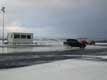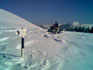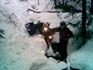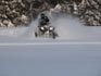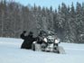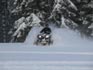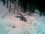 14 hod. - Dotáhli jsme k hotelu kačera na provázku (Silvia a jeho skidoo). Když už nebylo kde zapadnout, napálil to pro zpestření přímo do stromu. Prostě i