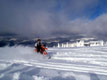 8.00 hod. - celou noc sněžilo venku je nádherný prašan, jdeme si půjčit skútry -2xVentura 700 a jedno dělo se 150koníkama ! Je to super, ale dřina v tom hlubokém sněhu, kolem