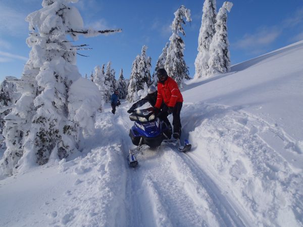 19.00 hod. - od rána bylo azuro, tak jsme vyrazili na hřebeny, byla to nádhera. Půjčili jsme si skútra Artic Cat 900 s dlouhým pásem, ale všichni se s ním váleli ;-).