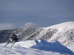 9.00 hod. - Včera jsme měli akční trip. Celou noc sněžilo, ráno jsme se vydali v počtu 6 pásovců přes Poien 1631 m, kde nás čekal akční strmý sjezd, naněmž vítr nafoukal obrovské závěje.