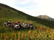 18.00 hod. - Právě jsme dojeli z dnešní trasy, od rána azuro, vydali jsme se po hřebenech směr Lesu. V místech, kde se jezdilo v bočním náklonu, bylo vidět skútry