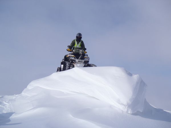 13h zase polévka a mění skútry za pásovce, vrážíme po ledních cestách na hřebeny, je tam tolik sněhu, že přichází ke slovu i naviják a lopata – je to bomba, vracíme se až 19h plní