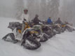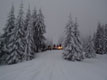 8.30 hod. - opět připadl sníh, ale už je jasno, bohužel musíme vyrazit domů, je tolik sněhu, že vlek musíme vytáhnout pásovcem. Pásovce a skútry tu zůstavají pro další partu.