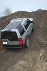 nezávislého zavěšení, ale bohatě ho kompenzuje křížení zadních polonáprav a velká světlá výška. Discovery zvládá překážku opět na jedničku.