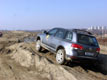 překážku, které se ostře láme dolů do kolmého sjezdu 35°, "sedne na břicho" pro malou světlou výšku. Touareg projel. Po