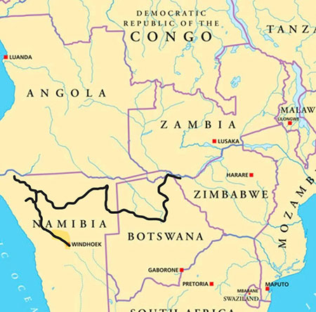 Windhoek | Tsumkwe | Delta Okavango | Maun - safari | Kazikini Community Camp | Khwai –NortGate Camping | Savuti Camp Area | Chobe Elephant camp | Chobe River camp | Viktoria Falls
